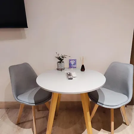 The apartment provides guests with a balcony, a living room, and a well-equipped kitchen, as well as such modern comforts as air conditioning.